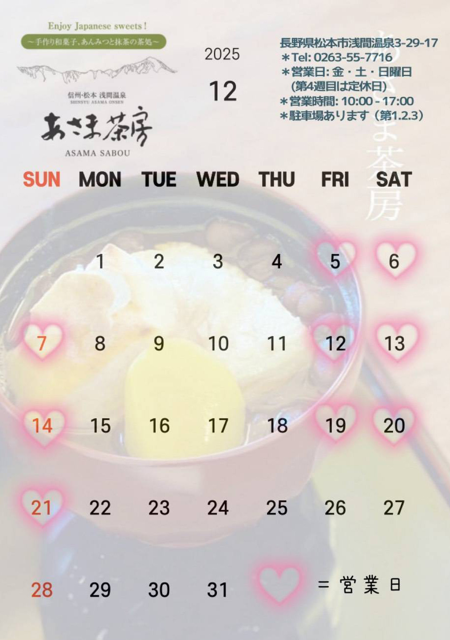 【12月の営業予定日】お汁粉を始めます|あさま茶房